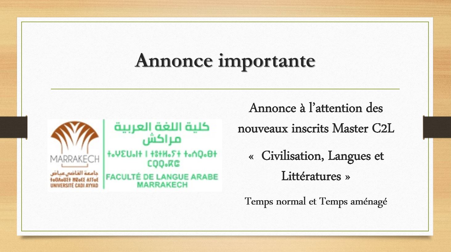 Annonce à l’attention des nouveaux inscrits Master C2L
