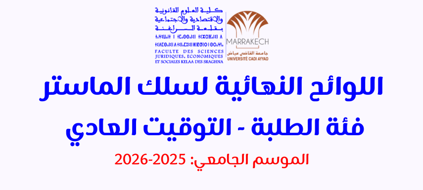 اللوائح النهائية لسلك الماستر فئة الطلبة - التوقيت العادي