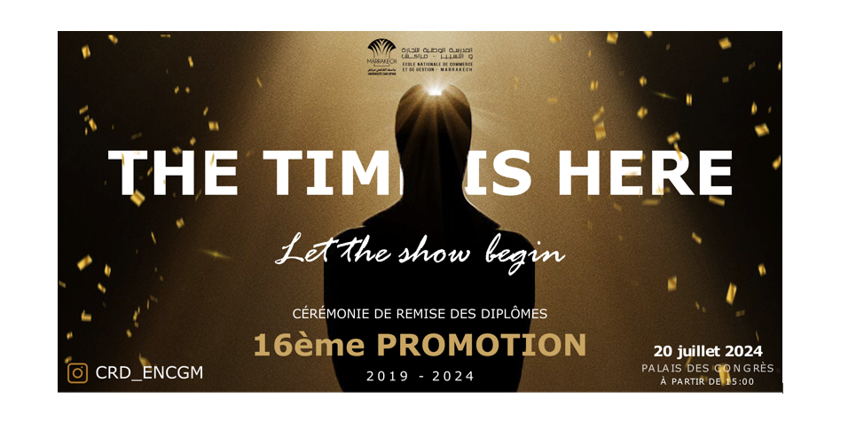L'Ecole Nationale de Commerce et de Gestion - ENCG Marrakech- UCA fête ses lauréats de la 16ème promotion autour d'une cérémonie pour célébrer ensemble leur réussite et honorer le travail de chacune des composantes de l'école.