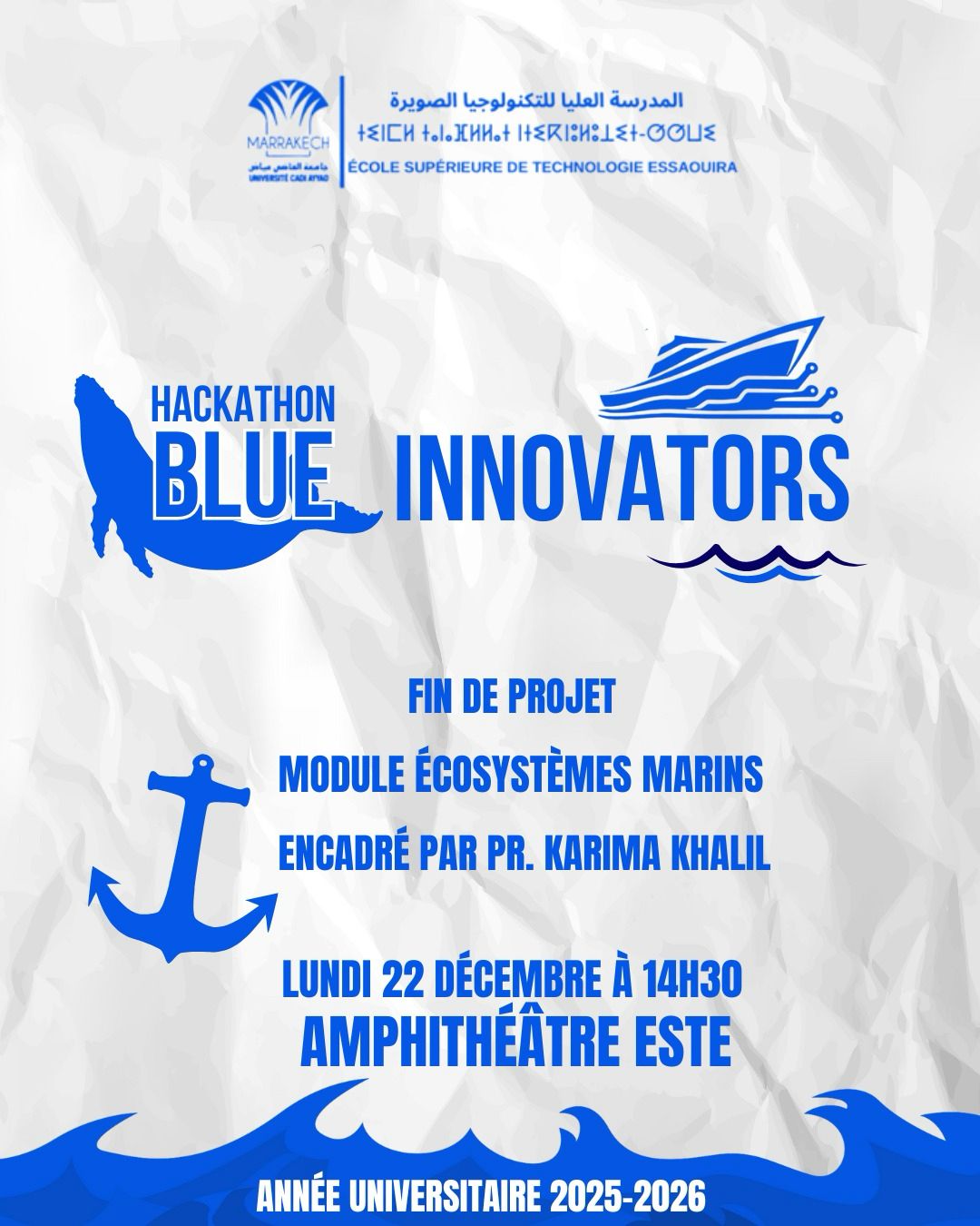 Dans le cadre du projet de fin de module – Écosystèmes Marins -, sous l’encadrement du Pr. Karima Khalil, les étudiants relèvent le défi de proposer des solutions innovantes pour la préservation des océans, la protection de la biodiversité marine et la valorisation durable des ressources marines.