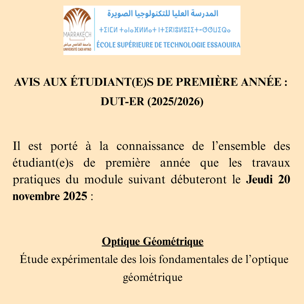 Annonce de Lancement des Travaux Pratiques Optique Géométrique DUT-ER1 _ 2025-2026