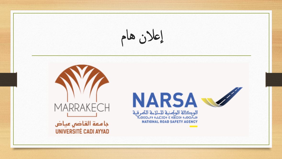 في إطار الشراكة بين جامعة القاضي عياض والوكالة الوطنية للسلامة الطرقية (NARSA)، تطلق الكلية استبيانًا لحصر الطلبة مستعملي الدراجات النارية للاستفادة من مبادرة وطنية لتوزيع الخوذات الواقية.