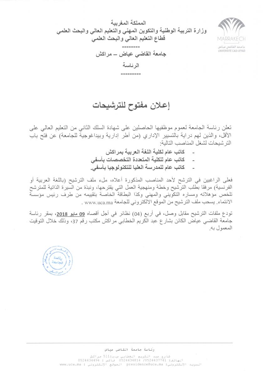 إعـلان مفتوح للترشيحات لشغل منصب كاتب عام