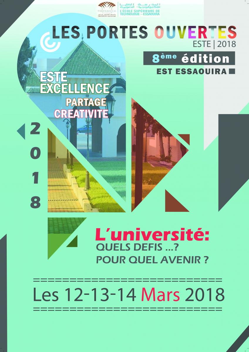 L’École Supérieure de Technologie Essaouira organise des journées portes ouvertes les 12,13 et 14 mars 2018. Tout au long des trois jours, les étudiants de l'institution excellent dans une panoplie d'activités allant des communications sur des thèmes d'actualité, des présentations des posters et des ateliers, à des compétitions techniques, culturelles et sportives.