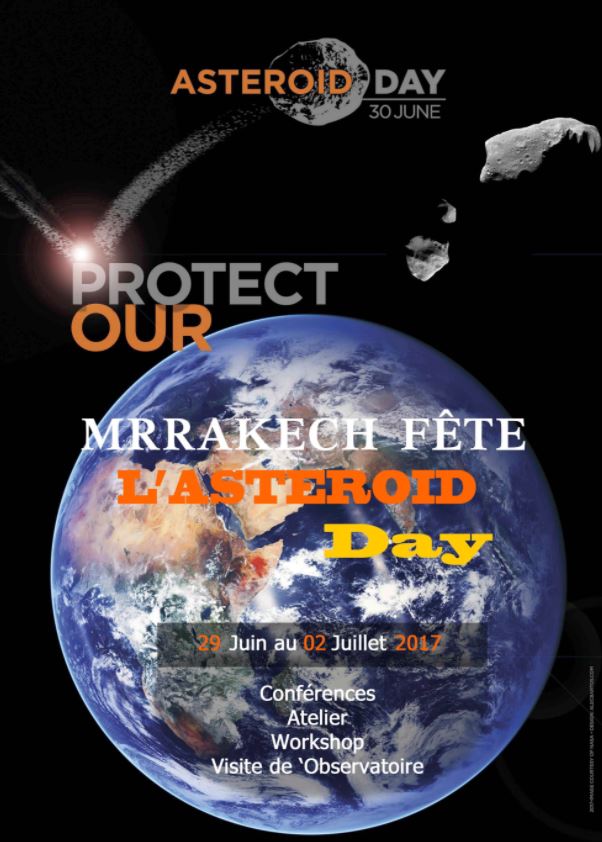 Au Maroc, à l’Observatoire de l’Oukaimeden, se trouve un télescope classé parmi les 7 meilleurs découvreurs au monde de Comètes et d’Astéroïdes (En savoir plus ici: http://moss-observatory.org et en direct ici: http://www.astroclaudine.fr/MOSS-live.htm). C’est donc tout à fait naturel que l’Observatoire de l’Oukaimeden relevant de l’Université Cadi Ayyad rejoigne l’initiative « International Asteroid Day » en fêtant l’événement avec ses partenaires habituels : l’Institut Français de Marrakech (IFM), l’Atlas Golf Marrakech (AGM), l'Académie Régionale de l'Education et de la Formation (AREF) et la faculté des sciences Semlalia de Marrakech (FSSM).