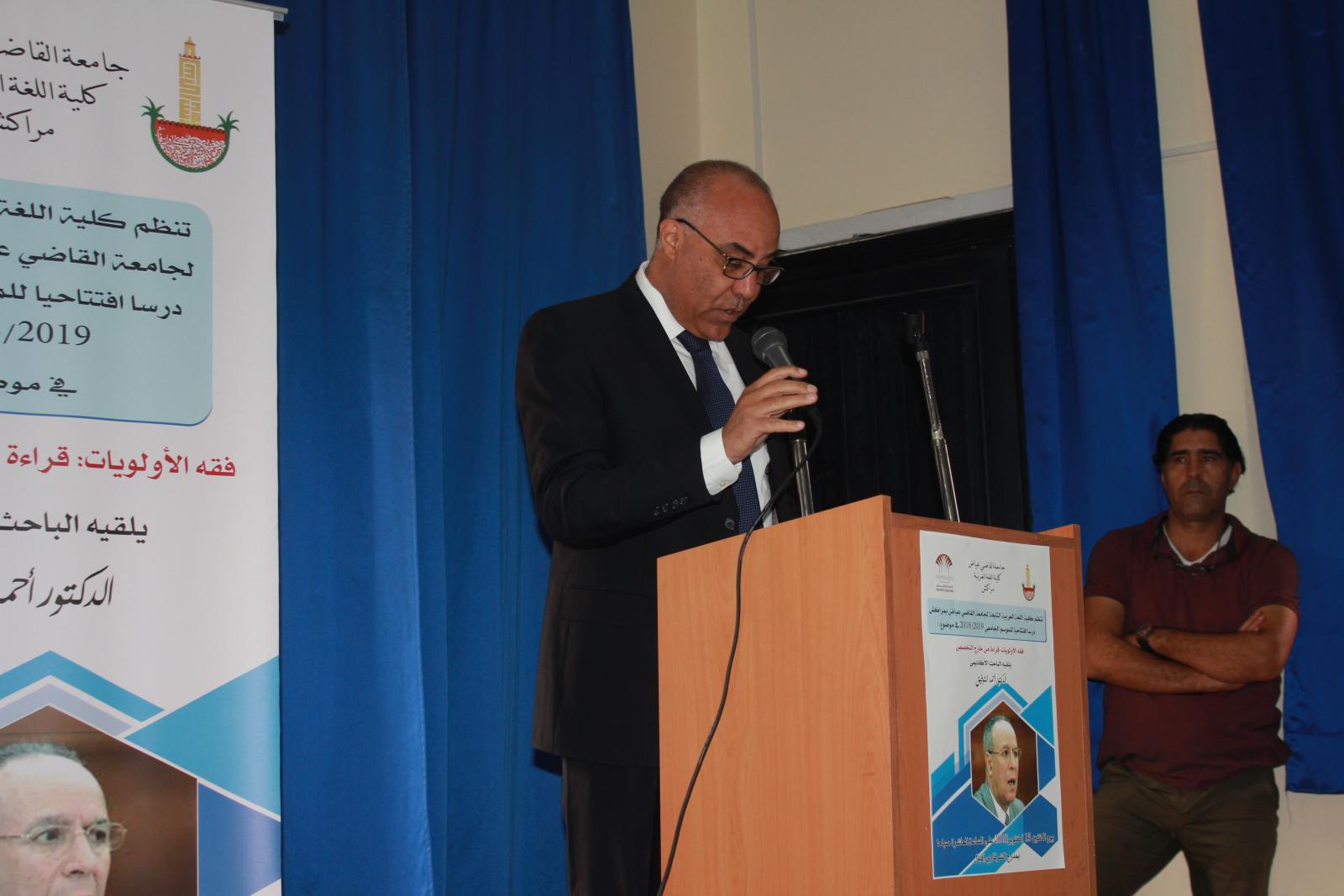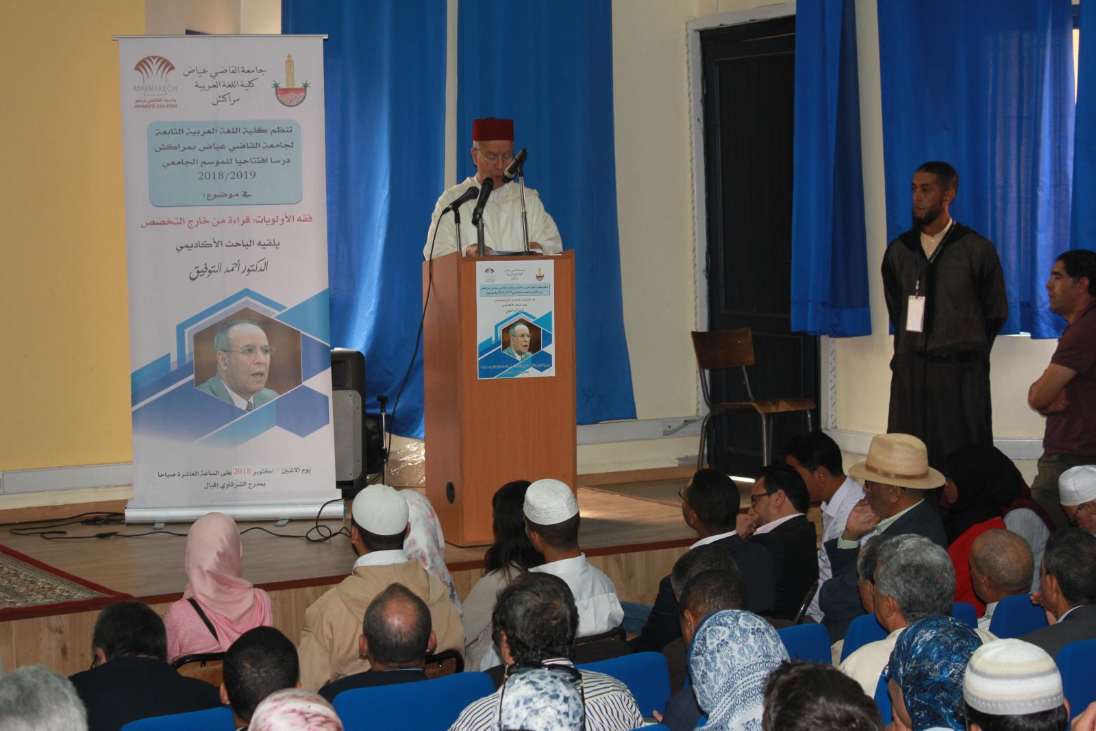 "استقبلت جامعة القاضي عياض الدكتور أحمد التوفيق وزير الأوقاف والشؤون الإسلامية و الباحث الأكاديمي وأحد أعلام الفكر بالمغرب لإلقاء الدرس الإفتتاحي في موضوع:" فقه الأولويات: قراءة من خارج التخصص