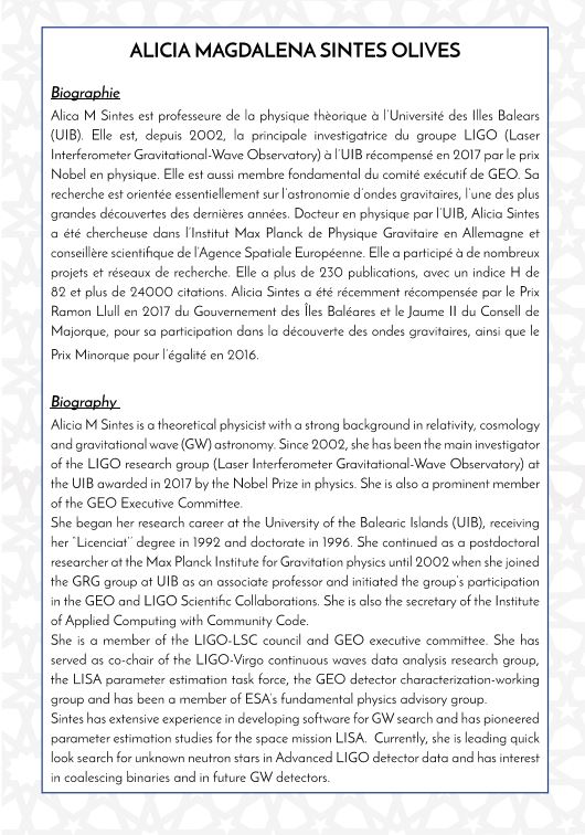 La Professeure Alicia SINTES, Astrophysicienne espagnole, membre de l’équipe Prix Nobel de Physique 2017: Invitée des Tribunes de Marrakech
