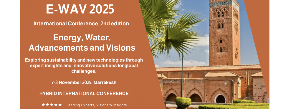 BENEFIT FROM EXCHANGES WITH INTERNATIONAL EXPERTS IN THE FIELDS OF WATER, ENERGY AND NEW TECHNOLOGIES BY SUBMITTING YOUR ABSTRACTS TO : Registration to E-WAV International Conference, 2nd Edition